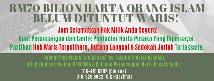Tahukah kalian bahawa masih ramai orang Islam yang belum membuat perancangan harta pusaka untuk ditinggalkan kepada waris dan bukan waris? Antara faktor utama yang menyebabkan berlaku perkara tersebut ialah kerana kurangnya kesedaran mengenai kepentingan menguruskan harta pusaka ketika masih hidup; sikap suka bertangguh untuk membuat perancangan harta selain tiada langsung ilmu berkaitan urusan berkenaan. Faktor-faktor…